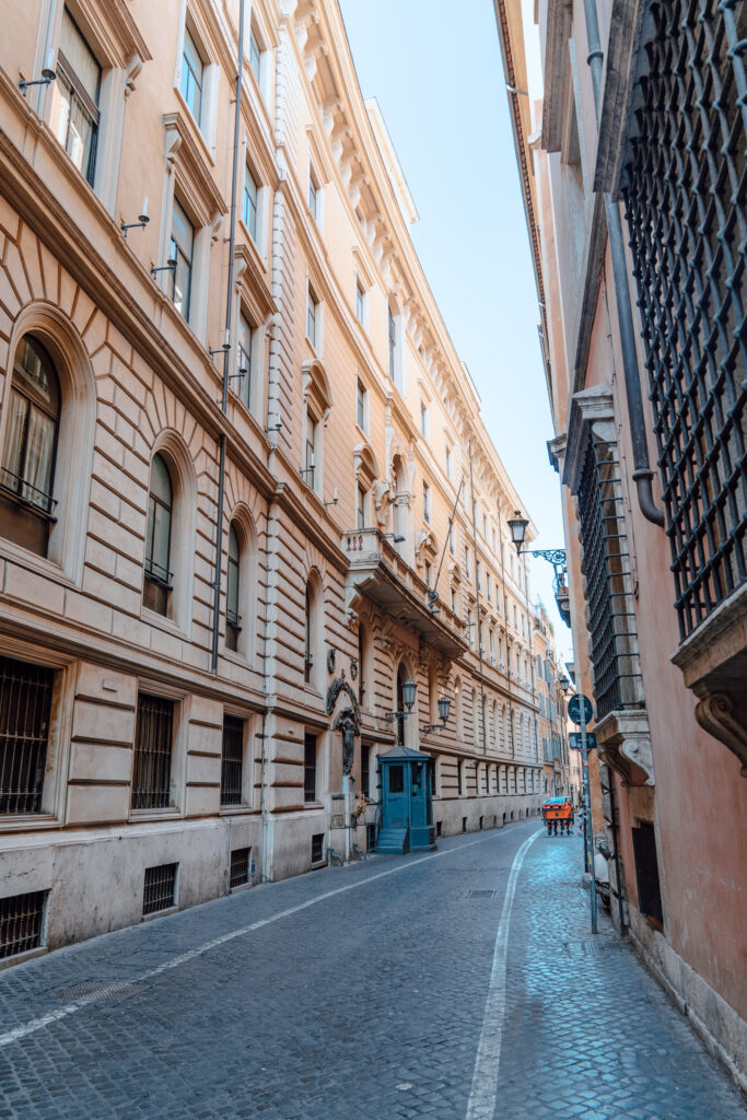 We make it to our lovely hotel tucked away in an alley in Rome – Domus Libera. We got there after staff had left (it’s only a 8-9 room hotel), but they provided instructions on how to check in after hours. Well, I needed my phone to do this and it was at 2% lol. I just wanted to do it real fast before my phone died, and I didn’t want to waste any time trying to send it to David’s phone, which was also almost dead. Meanwhile, our driver was hounding us for a tip…I had double checked prior to this moment that we had already pre-paid a tip for all of our private transfers. He tried saying this was not the case, and we’re just trying to make sure we have a place to sleep tonight. Eventually, my husband reluctantly provided him 5 euro just so he could leave.